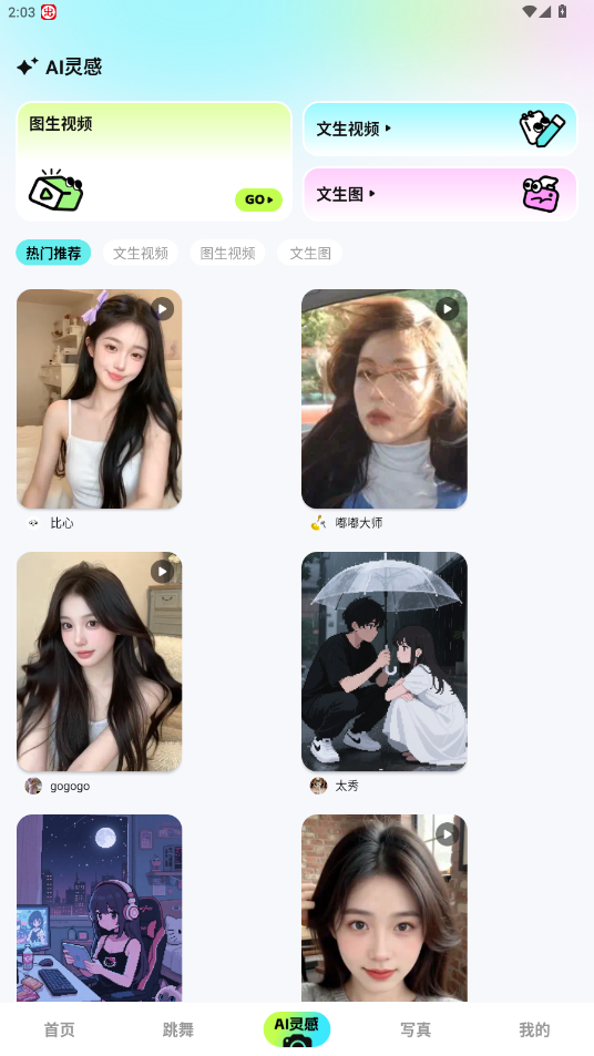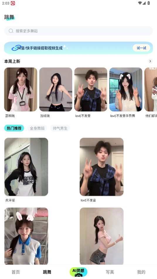进入首页,选择所需功能,比如视频换装
