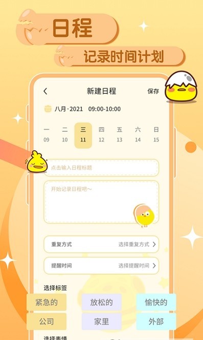 可以自定义一个不同的标签根据不同的时间类型进行管理,相关的事宜也会实时提醒是很值得被推荐的。