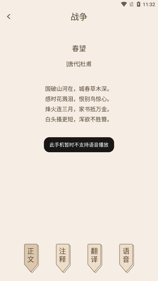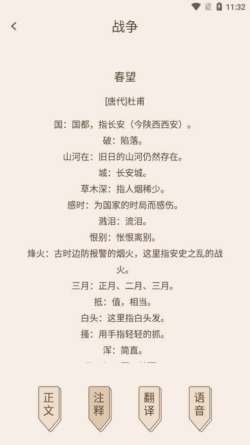 在学习诗词时可阅读数大量诗词,涵盖各类诗词场景,帮助你掌握诗词的注解和译文