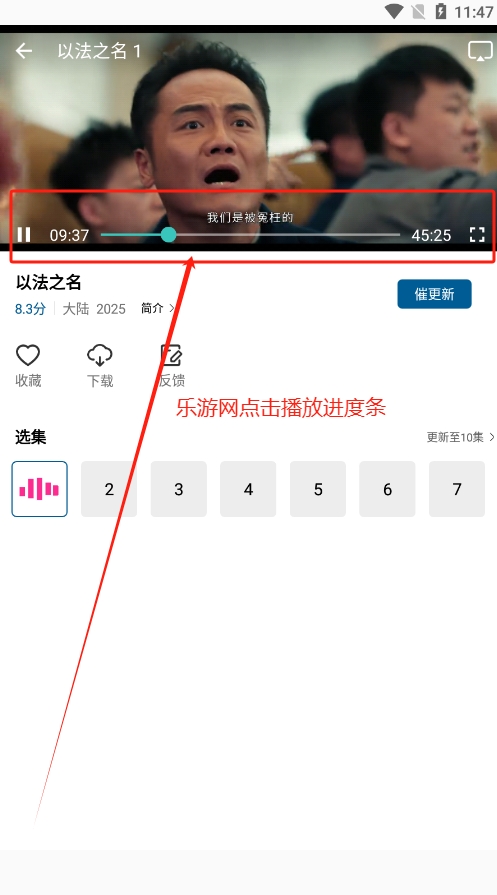 2、乐游网点击集数播放,选择收藏/下载,如果播放中遇到什么问题,欢迎随时反馈。