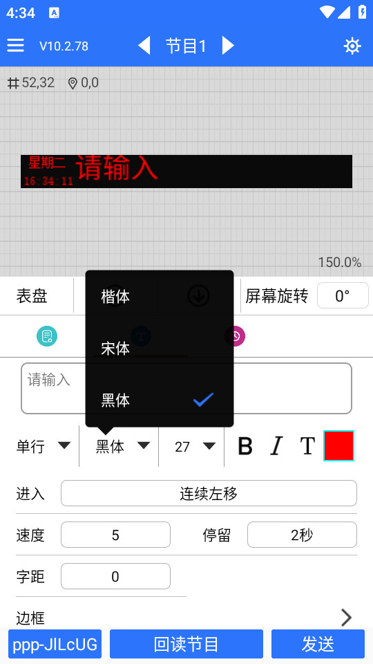 3. 节目发送: 当手机连接 Wi-Fi 时,可以手动按回读或者发送按钮发送数据到相应设备