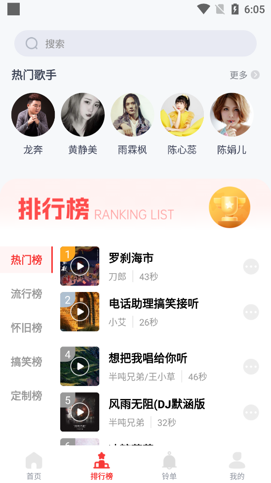 流行榜、怀旧榜、定制榜等超多热门榜单;