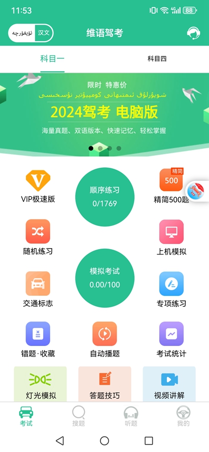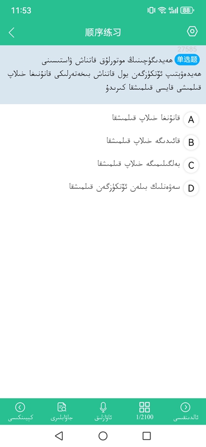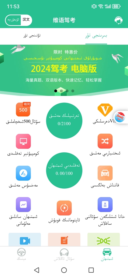 维语驾考app以双语支持为特色,以全面题库和模拟考试为核心功能,为维吾尔族及其他多语言需求的学员提供了便捷、高效的驾考学习平台。无论您是想考取哪种类型的驾照,都能在这里找到适合自己的学习路径,轻松备战驾考!