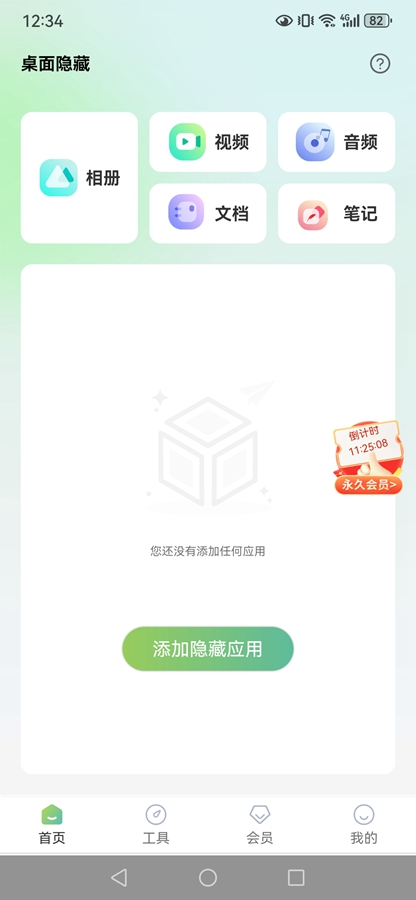 进入真正软件界面后,可以点击【添加隐藏应用】来隐藏需要的应用