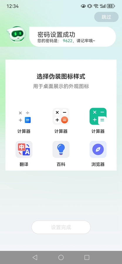 -应用伪装成计算器、浏览器、翻译多种样式,输入指定密码才能进入应用