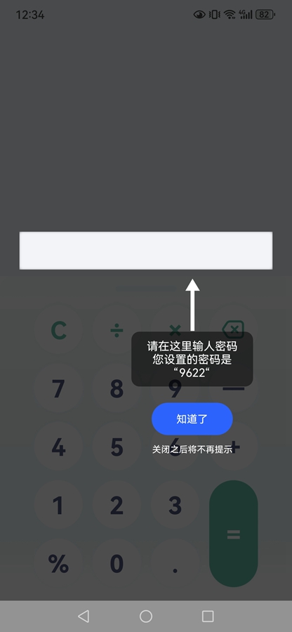 选择好后软件重启需要输入正确的密码,如果不输入密码就是你伪装应用的功能,比如计算器就是计算器功能