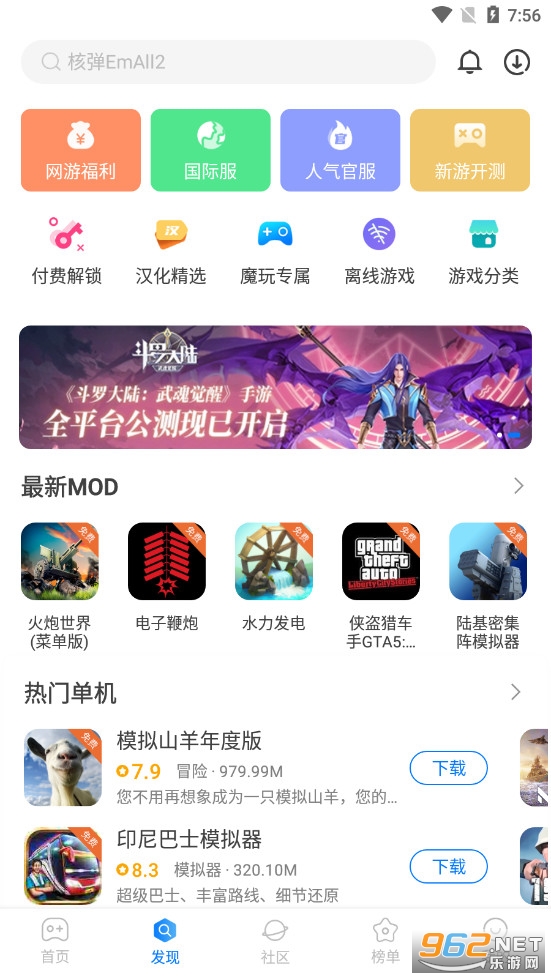 《魔玩助手》是一款为朋友们打造的游戏盒子软件,魔玩助手中有着网游、单机、角色扮演、射击、休闲益智等众多不同类型的手机游戏,朋友们还可以选择破解栏目去寻找一些破解的游戏,比如饥饿鲨、樱花校园模拟器等,让你徜徉在游戏的海洋。