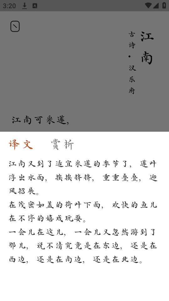 《采撷诗词app》是一款专注于诗词和传统文化的学习与欣赏的软件。收录了大量经典的诗词作品,涵盖唐诗、宋词、古诗、诗经、元曲、古文、论语等多个类别。每首诗词都附有详细的解释、赏析和作者的介绍,帮助用户更深入地理解和欣赏。支持将诗词制作成精美的诗词壁纸,提供诗词译文、赏析和作者详细介绍,同时支持诗词朗读功能,包括随机、顺序、单曲模式,还可以设置朗读速度、音量、背景音乐。提供名师对诗歌的详细分析和解读,帮助用户深入理解诗词。