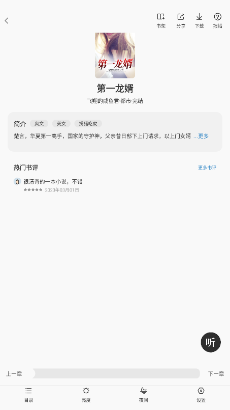 一款非常实用的小说阅读软件,聚合几乎全网的优质小说资源,并且全场免费,让用户不用花钱就可以阅读各种小说。为了让大家可以轻松找到自己感兴趣的小说,平台根据每本书籍的类型进行了明细分类,用户可以轻松快速的寻到言情、都市、穿越、同人、玄幻、悬疑、热血、重生、末日等各种精彩不同的小说。用户可以根据自己喜欢的小说名进行查找,系统也会根据用户的小说阅读记录,智能推荐相类似的书籍,这样书迷们不用为书荒而烦恼。此外,番薯免费小说软件支持在线免费阅读小说,支持听书模式,当眼睛疲惫的,用户可以释放双眼,感受更好的阅读体验。