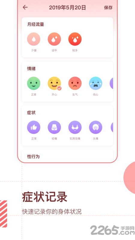 轻松记录姨妈期的各种数据和症状,持续天数、情绪变化等等