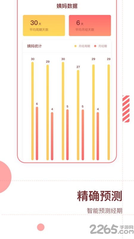 大姨妈预测app是一款对于女性而言十分实用的一款软件,软件主要针对用户的身体情况进行观测!并且科学的给予一定的监测!精准的给予用户一定的预警,提前提醒用户的大姨妈的到来时间!感兴趣的用户快来2265安卓网下载吧!