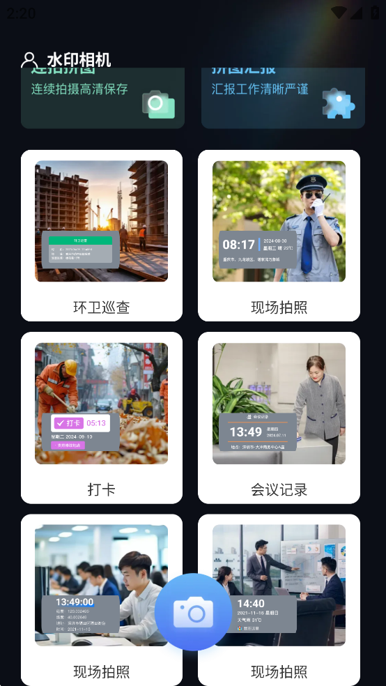 视频打卡、考勤打卡、物业工作记录、建筑工程管理、外勤拍照、品牌宣传、现场取证、会议记录、执勤巡逻、旅行打卡等