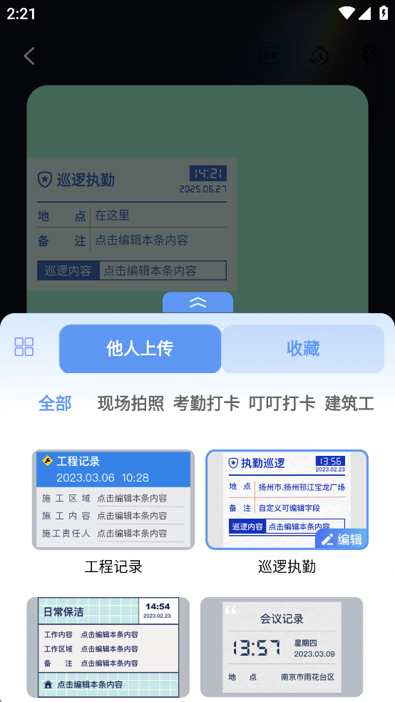 工作记录拍照:物业管理、建筑工程管理、执勤记录等工作记录专属模板