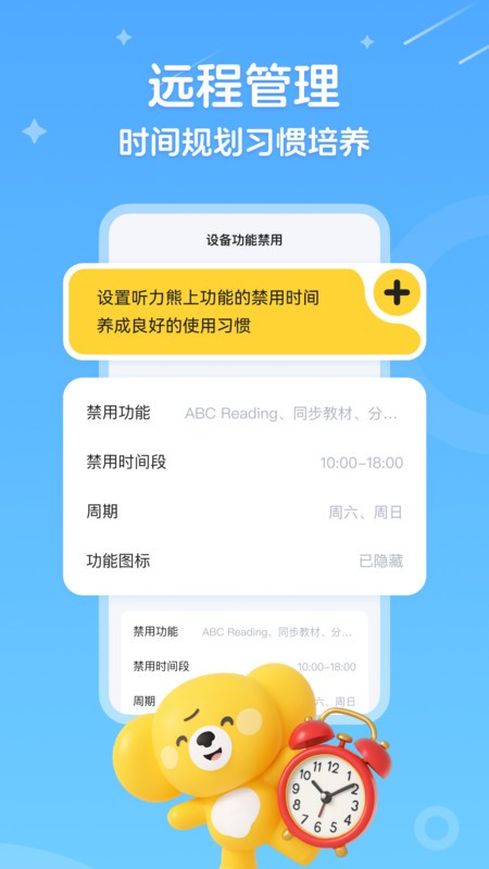 听力熊app软件适合家长来使用,家长可以绑定旗下的学习机、点读笔以及复读机等智能学习产品,里面包含了精彩的学习内容,支持点读,能够学习教材知识,也能学习绘本故事,可以查看孩子的学习记录,管控孩子使用设备的事件。