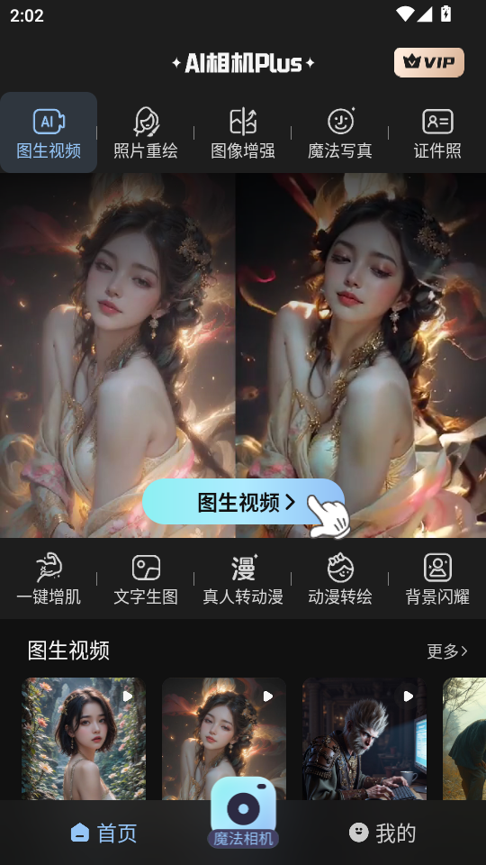 创作多样性:除照片处理外,还提供文字生图、魔法写真等扩展功能。