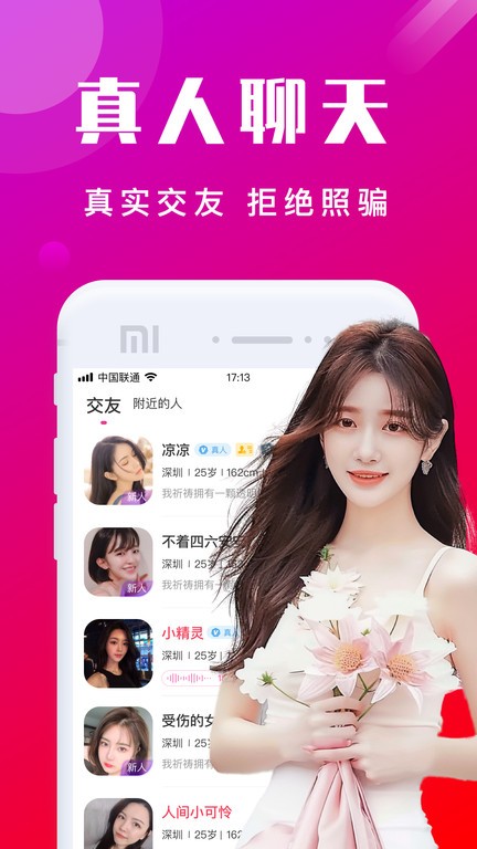 同城交友约会,自由选择线上高颜值妹子,线上交友聊呗,线下见面约会,带你进入恋爱空间。探寻附近有趣的灵魂伴侣,即刻告别单身。
