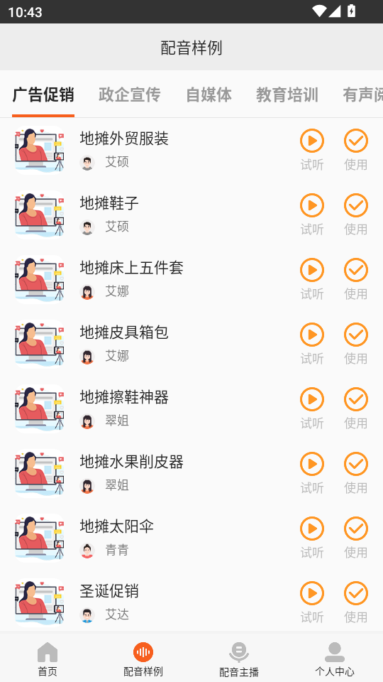 多场景适配:从商场广告到动漫配音,支持地摊叫卖、企业宣传、英语听力制作、车辆导航语音录制等场景。