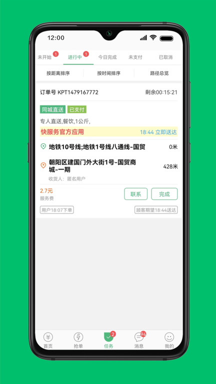 5、列表点击或滑动按钮会直接完成抢单操作,不再跳到任务详情