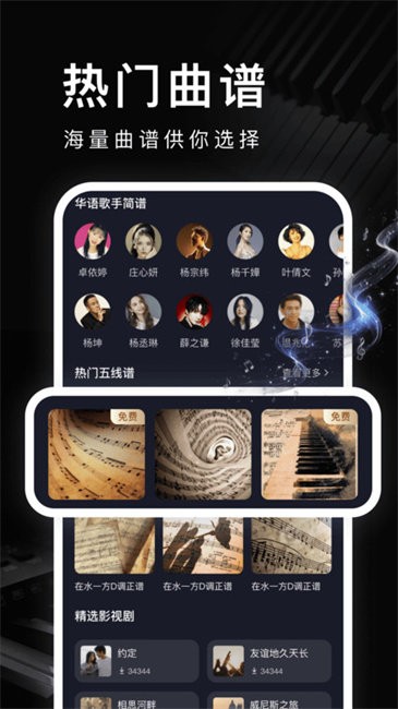 软件涵盖许多有趣高清弹奏教学,掌握大量曲谱;