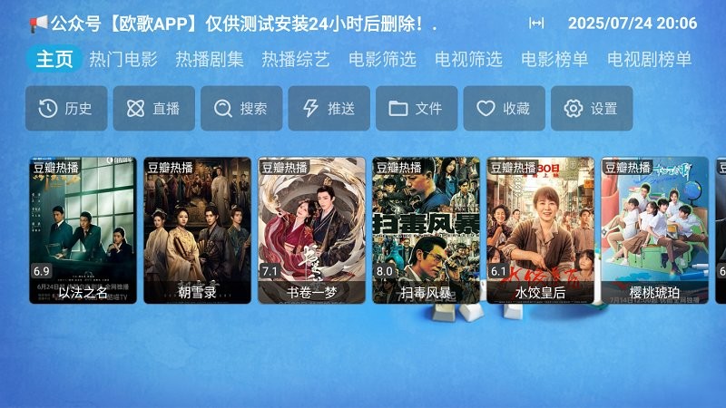 欧歌Cat内置多仓版不光是一个免费追剧软件,还是一个免费看电视直播软件,功能强大,集成了多家正版影视资源,资源分类清晰,画质高清,用户体验良好,去除了广告和弹窗干扰,让用户能够更专注地观看喜爱的影视内容,快来下载试试吧!