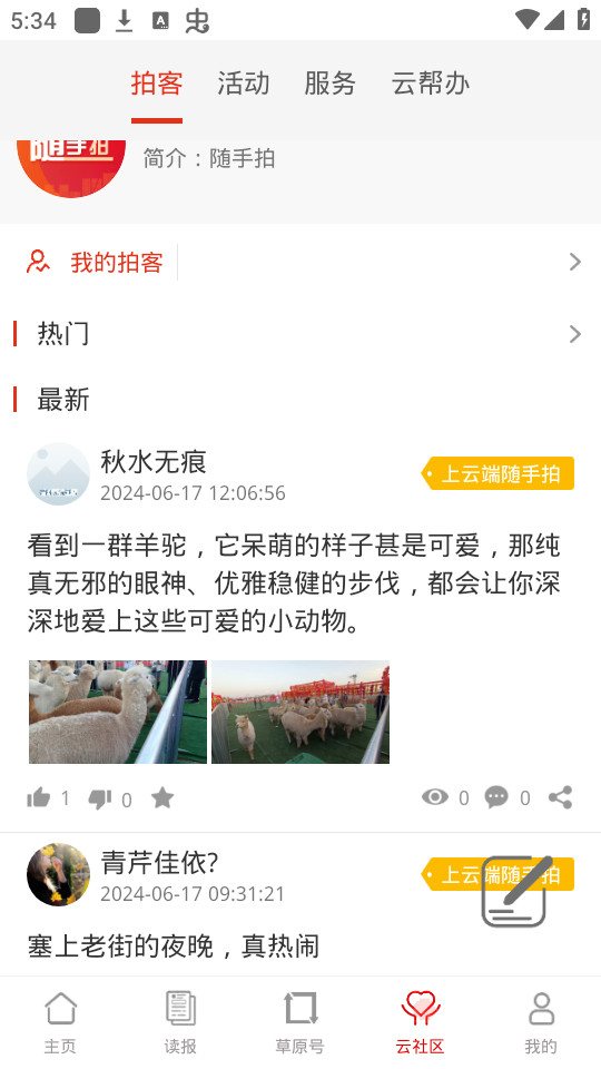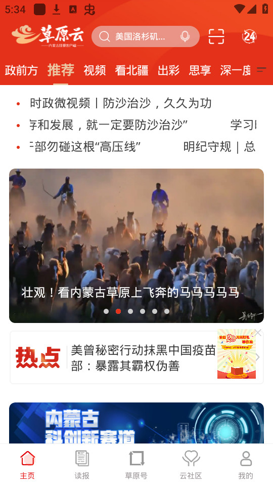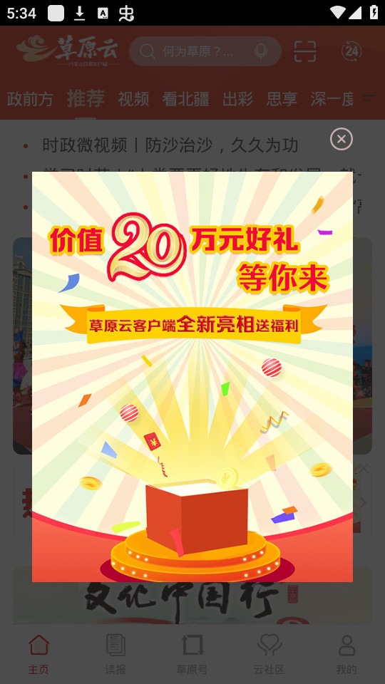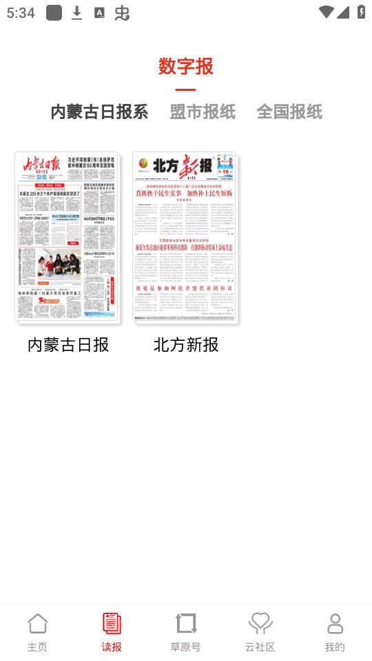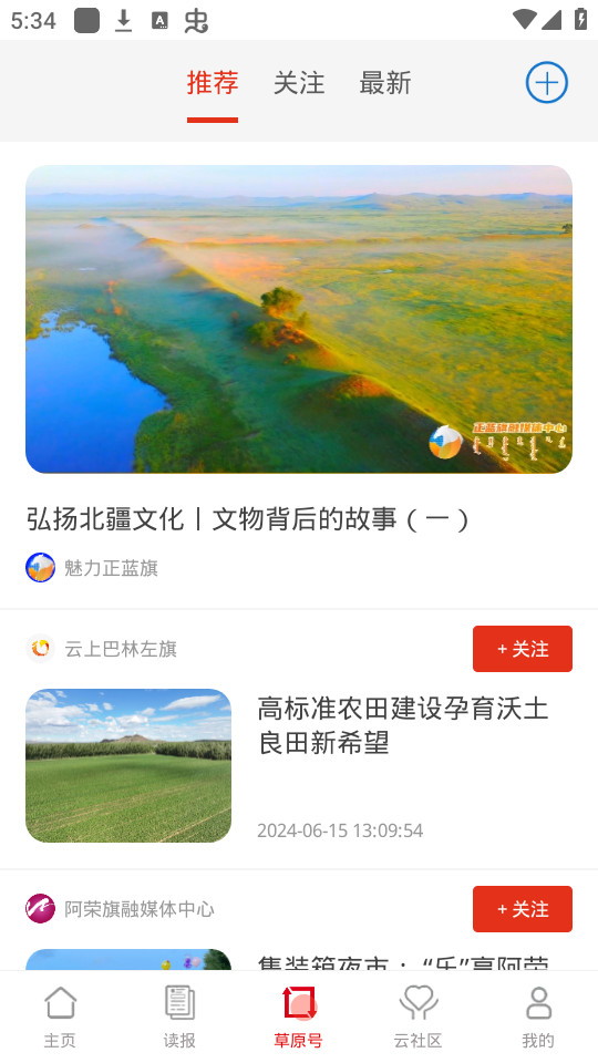 客户端设置有主页、融媒、草原号、帮帮、我的几大版块。