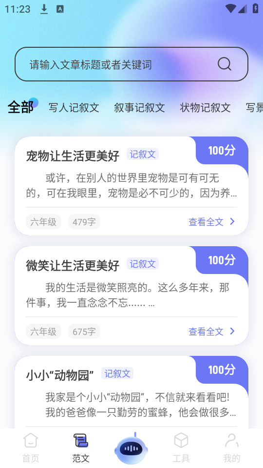 极光根据您的要求匹配写作要求、题材、手法、思路给出高分作文案例,并可批量给出段落案例。