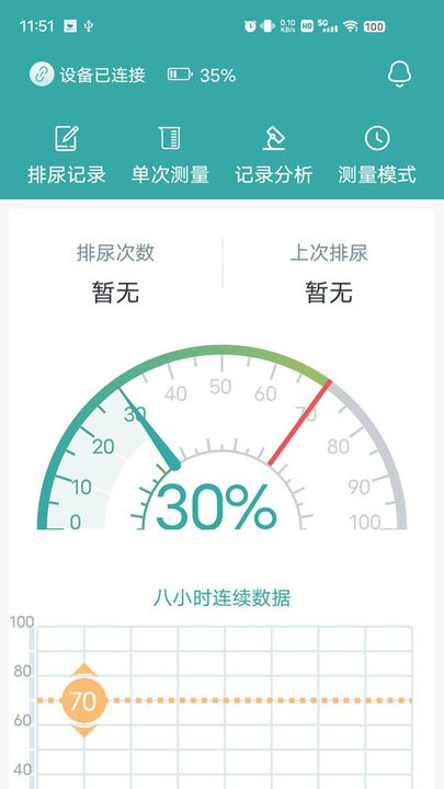 支持用户选择到单次测量功能来进行排尿情况的测量使用,便于用户掌握身体健康情况