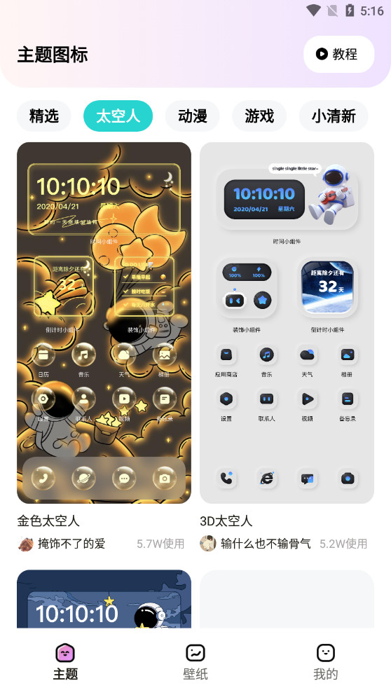 时光主题提供了丰富多彩、个性化的手机桌面主题,用户可以在软件内浏览和下载自己喜欢的主题,还可以自定义和编辑主题元素,如壁纸、图标、桌面布局等。时光主题还提供了多种主题风格,如简约、华丽、自然、科幻等,满足不同用户的个性化需求。