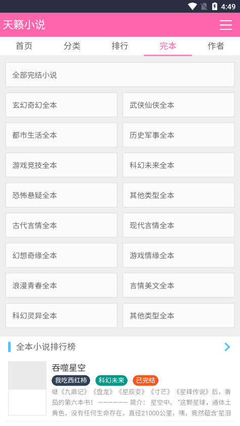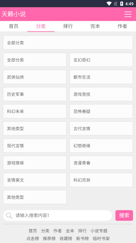 书源丰富所带来的最大好处就是小说类型同样丰富,它拥有多种多样的小说类目,诸如科幻、仙侠、言情、历史、军事、都市、同人、职场、体育等类别应有尽有,还可以按男女喜好进行分类,总有一款符合你的口味。