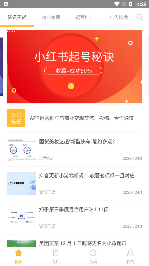 1.收获APP运营推广方案、流量变现方案、行业动态资讯