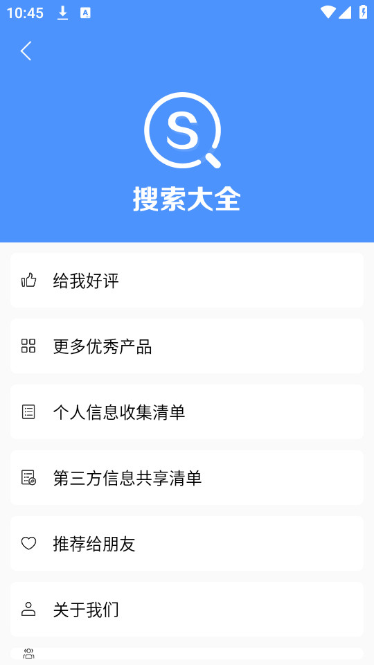 告别臃肿的搜索引擎App,告别缓慢的搜索引擎App打开速度,搜索大全,给你一站式快捷便利的搜索体验。