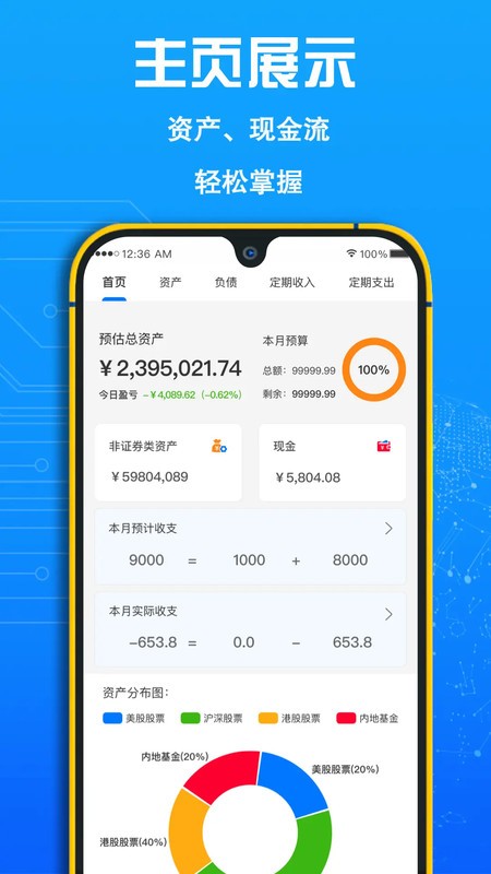 清晰明了的资产总览界面,所有数据都能在应用中轻松掌握,管理账单更高效;