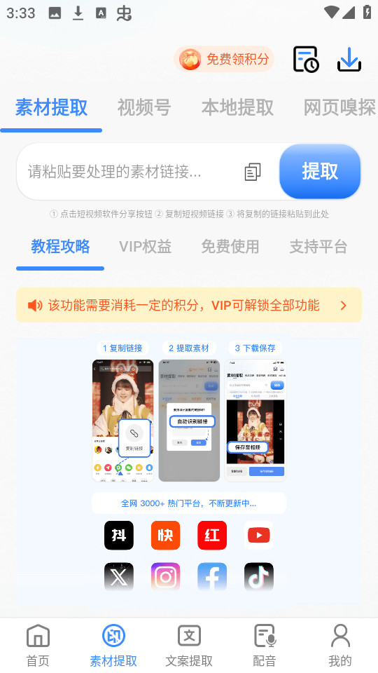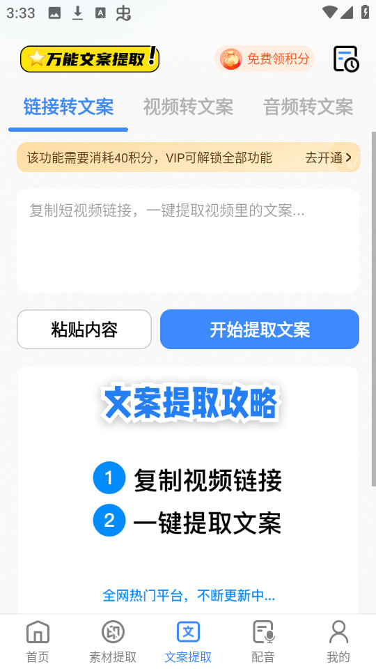 从链接、视频、音频等提取文案,支持热门app。