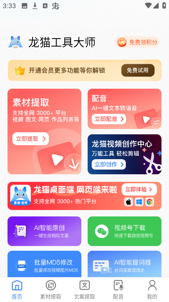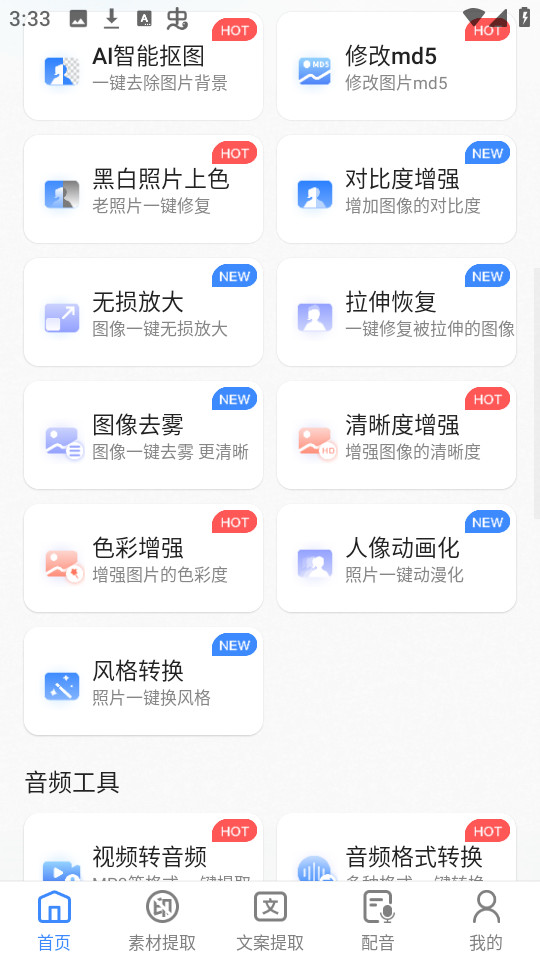 龙猫工具大师是一款素材处理工具,界面简洁流畅,有多种实用功能,是自媒体人必不可少的运营神器。