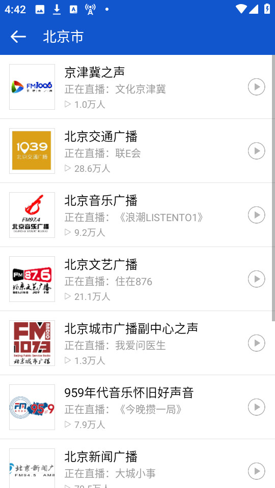 用户可以实时收听全国各地的电台直播节目。