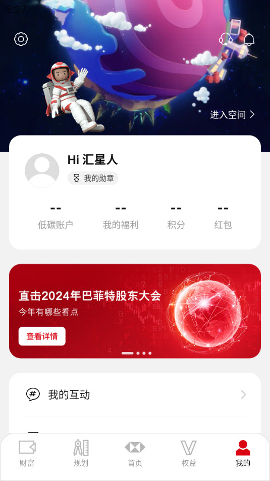 1.下载并打开汇丰汇选app后,点击【我的】。