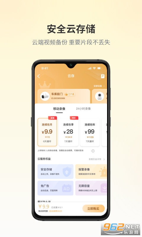视频服务:通过云视频服务,查看实时监控,调取回放画面。