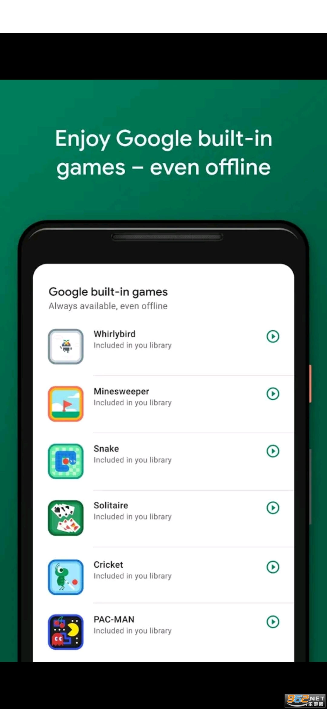 内置的Google游戏:玩纸牌、扫雷、贪吃蛇、吃豆人、板球和旋风鸟——即使您处于离线状态。