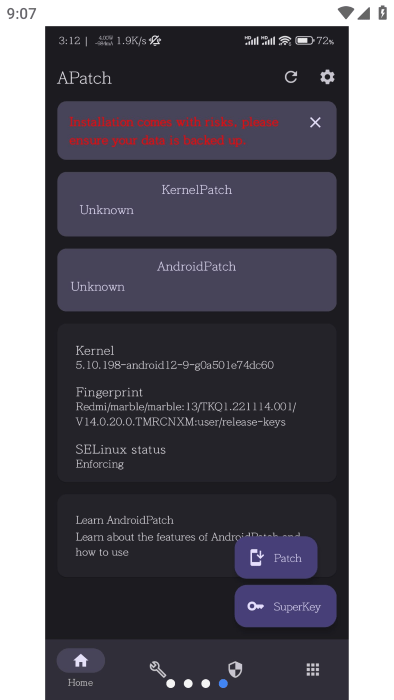 apatch内核root管理器是安卓内核级优化神器,和kernelsu功能差不多,是一款可以进行安卓内核进行编辑使用的工具,是主要用于修改漏洞打补丁的软件,需要具备一些知识,可以直接的把代码打入进去,在不会的情况下千万不要随便的使用,导致开不了机,谨慎使用。