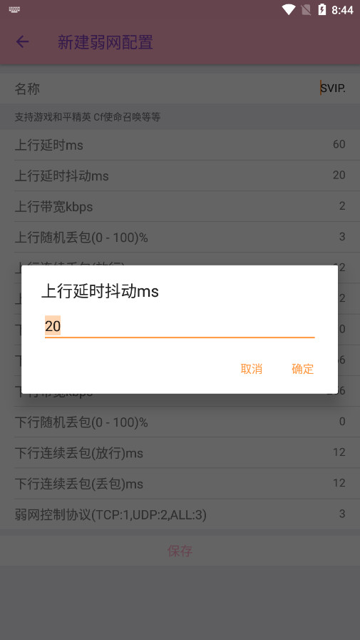 3、在“新建弱网配置”当中,就能够对新版弱网的各项参数进行设置啦。