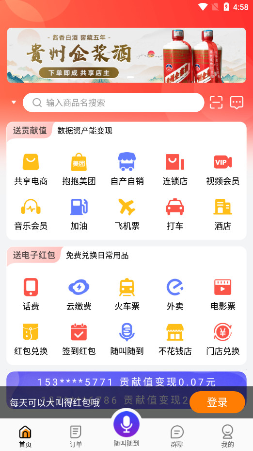 1、电子红包嗖嗖身边推广赚钱功能分类,以送贡献值/数据资产能变现/送电子红包/免费兑换日常用品等部分组成,根据实际情况去到对应板块操作。