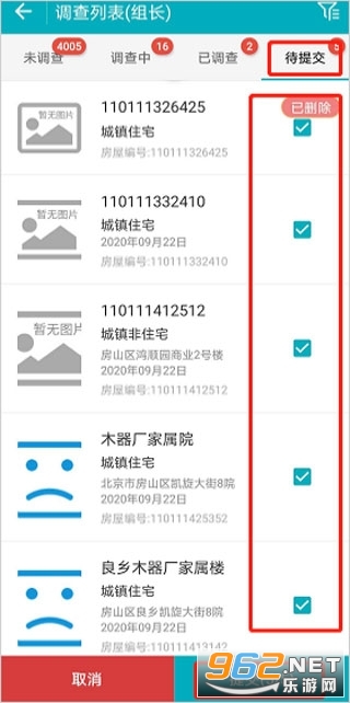 10、若底图中的房屋实际调查已经不存在了,可删除房屋,点击【调查】