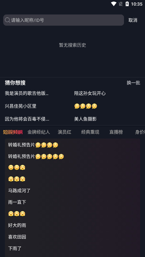 3、我是演员app主要的功能与其他同类短视频软件相同,有着最新的视频推送,软件上方【附近、商城、直播、关注、推荐】为主、下方则是【最新视频推送、信息、发布视频、发现、我】等几个部分。