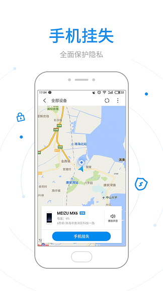 魅族查找手机app官网版是flyme查找手机app,魅族的查找手机软件自带版本,是魅族科技的杀手锏功能之一,它能够使用丢失手机强制打开GPS和流量定位丢失手机,还能够拍照录音,定位精准到身边,还能发送报警音,让小偷防不胜防,快来这里下载使用!!!