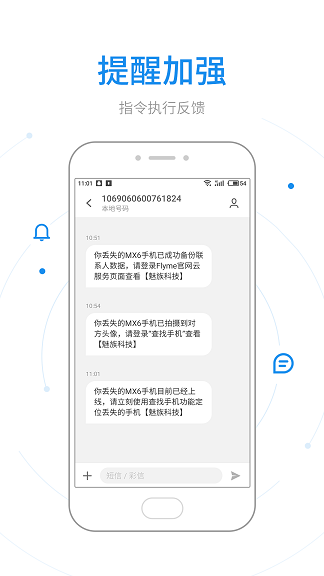发送消息:向丢失手机发送消息通知提示,方便与拾到者联系。