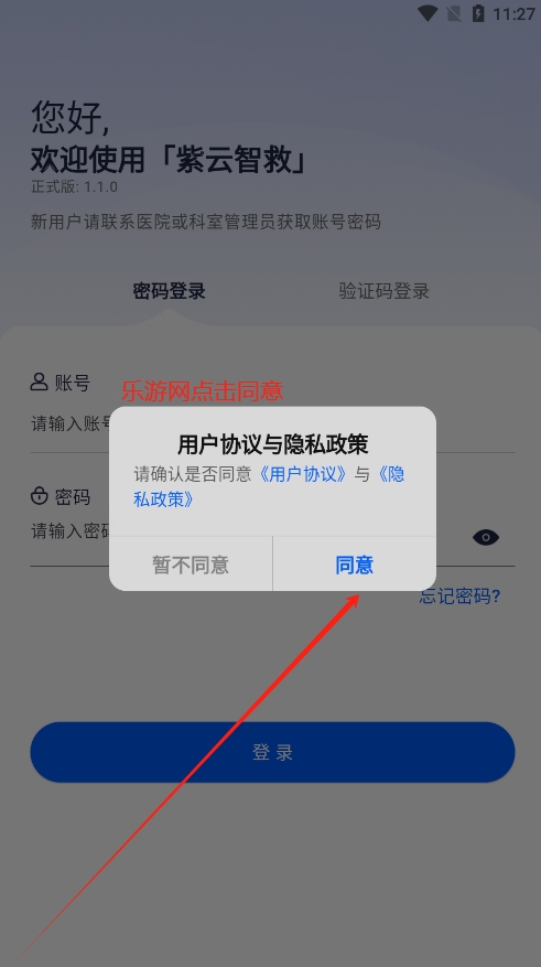 2、确认“同意”用户协议和隐私政策。