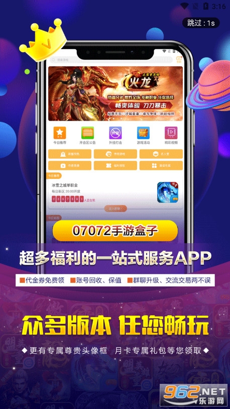 1、07072手游盒子app是2026全新上线的一款安卓手游盒子辅助应用,内置海量BT、私服、无限元宝、无限金币游戏,游戏福利众多,统统不用氪金充钱