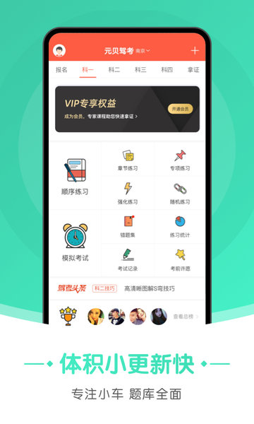 元贝驾考小车题库是一款非常实用的学车app,它集考试报名,预约等车以及题库练习等功能为一体,帮助用户能够更快的拿到驾照,快速通过考试,题库实时进行更新,拥有超高的人气,有需要学车的用户就快来下载使用吧!