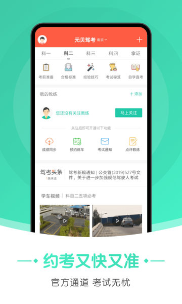 ·一键预约:轻松预约场地和时间,绿色通道考试易;