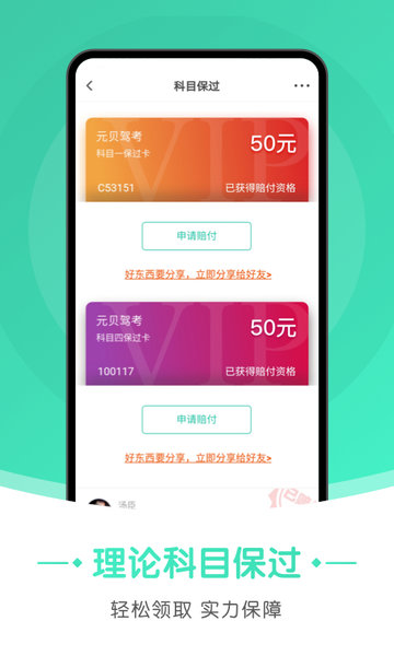 现在下载免费领取科目保过卡,科目考试100%通过,不过立赔补考费,保您驾考无忧。